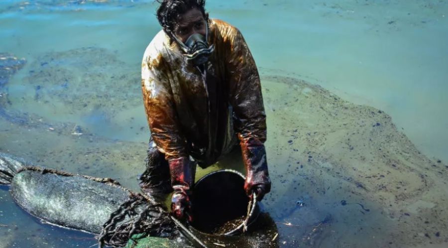 Según Dowarkasing, el flujo de derrame del combustible ha disminuido ligeramente en las últimas horas gracias a los esfuerzos de las autoridades por vaciar los tanques del barco, pero el caudal no se ha detenido aún del todo, empeorando la marea negra que se extiende sobre las aguas.