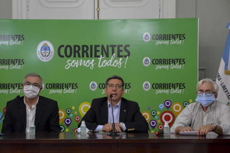 Encabezaron el encuentro con los medios, los ministros, de Producción, Claudio Anselmo y de Seguridad, Juan José López Desimoni, acompañados por los directores, de Defensa Civil, Eulogio Márquez y de Recursos Forestales, Roberto Rojas. También se hizo presente, el diputado provincial, Eduardo Vischi.