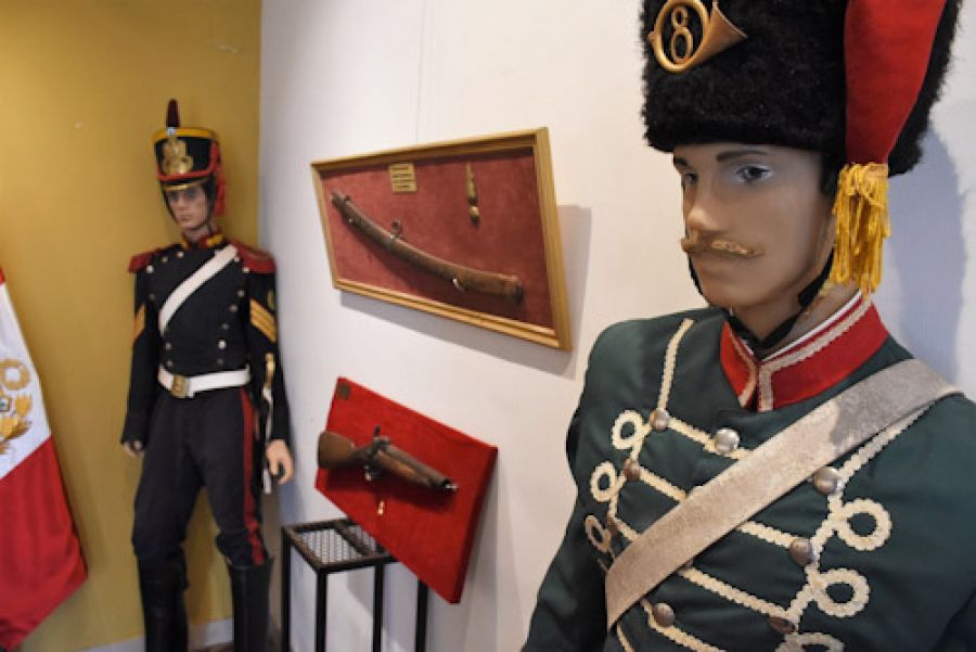 Uniformes, armas y objetos de época que evocan al Libertador, de exhiben hasta el 2 de septiembre en la sala drl parque Cambá Cuá, En la apertura integrantes del Instituto Sanmartianiano ofrecieron una charla alusiva.