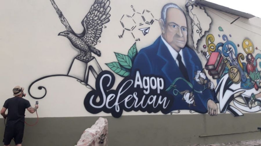 El artista visual Matías Rauber y la comunidad educativa del Colegio Secundario Don Agop Seferian de la Ciudad de Corrientes concluyeron un mural en homenaje al pionero de la industria textil Agop Seferian al cumplirse 30 aniversario su apertura.