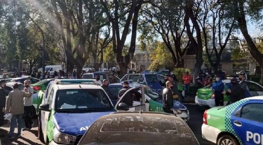 Pasadas las 22 comenzó con un pequeño grupo de efectivos que acudieron de civil frente a Plaza San Martín y cerca de las 23, ese número se multiplicó.y se sumaron los móviles policiales.