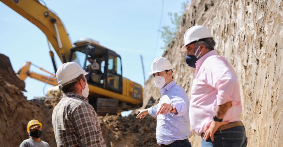 El gobernador Gustavo Valdés junto al ministro de Obras y Servicios Públicos de la Provincia, Claudio Polich, recorrieron este martes el estado de avance de los trabajos en la avenida Alta Gracia de la ciudad de Corrientes, que consisten en la ampliación y mejoramiento de los desagües pluviales.