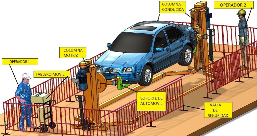 ¿Cómo salvaron esta limitación los ingenieros de la UNNE?. Plantearon el montaje de dos columnas independientes una de otra, a las que incorporaron un sistema variable de sujeción. Esta sutil variante permite utilizar distintos tipos de vehículos del tipo Berlina/Sedán y monovolumen.
