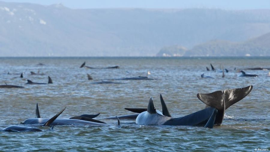 Las ballenas se encuentran atascadas en varios bancos de arena de la bahía de Macquarie, en el oeste de Tasmania, mientras los biólogos y expertos marinos estudian la manera de mantener con vida al mayor número de estos enormes mamíferos, que pueden llegar a medir hasta siete metros y pesar unas tres toneladas.