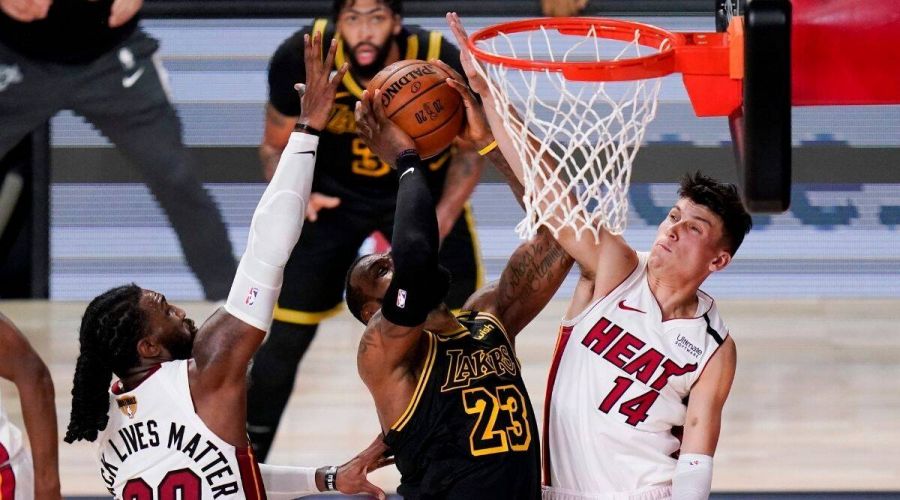 Miami Heat (2-3) superó anoche a Los Angeles Lakers (3-2) por 111-108, en un dramático encuentro, y extendió la serie final que ambos equipos animan por el anillo de la NBA.