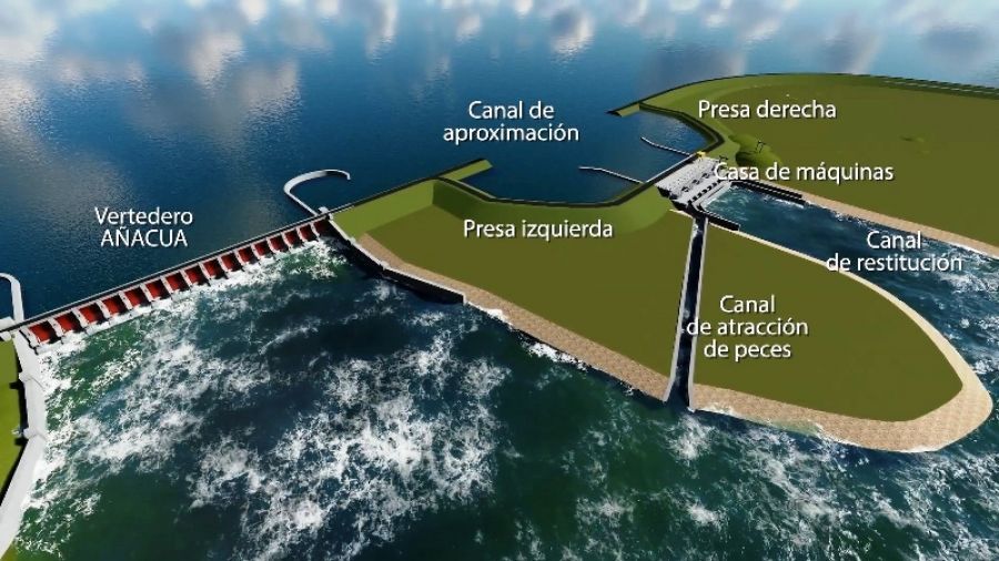 La compañía IMPSA, que compitió en la licitación en la licitación mediante el consorcio Araverá, integrado también por la paraguaya CIE y Power China, perdió la compulsa frente a la compañía alemana y cuestionó el proceso licitatorio. Se trata de una obra de alrededor de 293 millones de dólares y contempla la instalación de tres turbinas verticales del tipo Kaplan de 92 MW cada una y tres transformadores de 100 MVA.