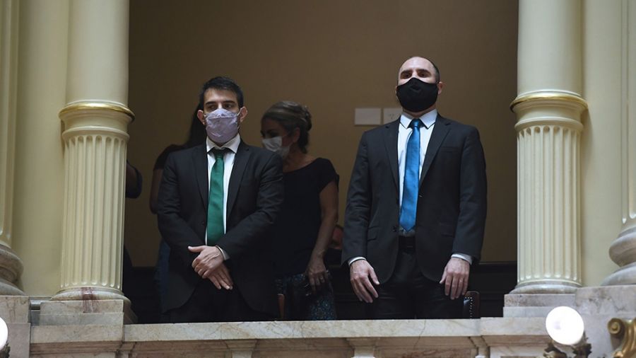 Desde el palco, el ministro de Economía, Martín Guzmán, junto a sus pares de de Desarrollo Social, Daniel Arroyo; y de Infraestructura, Gabriel Katopodis, siguió el tramo inicial de la exposición de Caserio y luego se retiró.