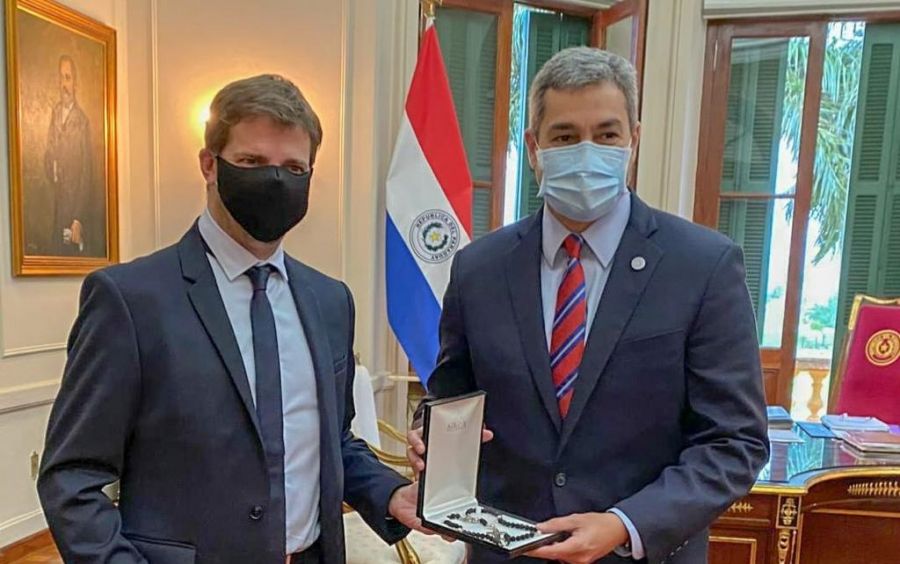 El Presidente del Paraguay, Mario Abdo Benítez recibió en Asunción el lunes al director argentino en la EBY Ignacio Barrios Arrechea para evaluar avance en las obras de Aña Cuá entre otros temas .
