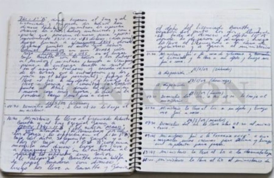 Aunque recién trascendió ahora, el juez había ordenado esta diligencia el 3 de noviembre pasado. En la misma resolución, rechazó un pedido para buscar huellas dactilares en los cuadernos.