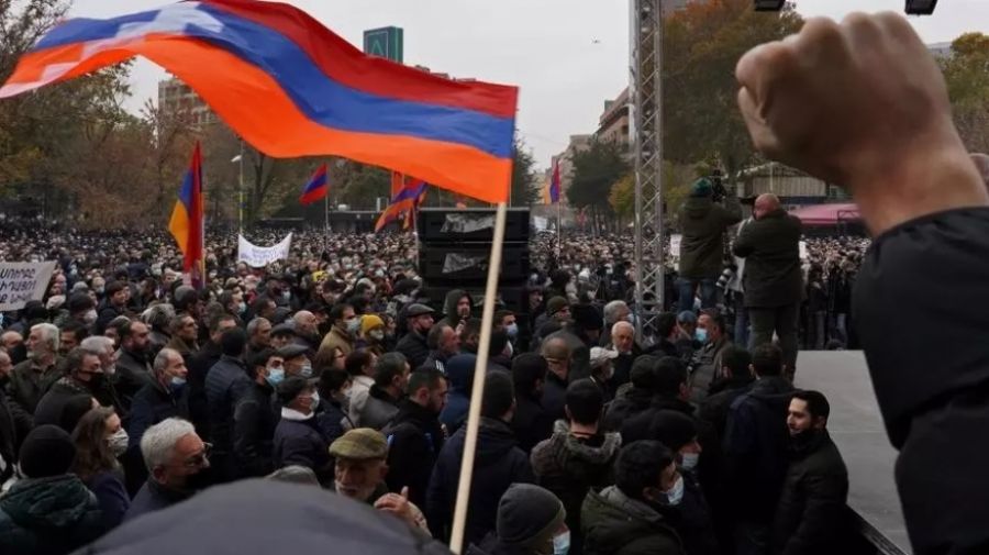 Miles de personas salieron a las calles de forma masiva contra Nikol Pashinian y a favor de su renuncia, debido al pacto con Azerbaiyán en la disputada región que, de acuerdo a sus adversarios, dio ventajas territoriales a los azerbaiyanos.