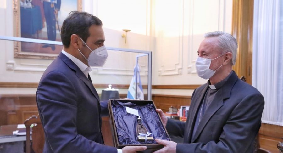 En la oportunidad, además, el Gobernador obsequió al Arzobispo, la imagen de la Virgen de Itatí, tallada en madera.