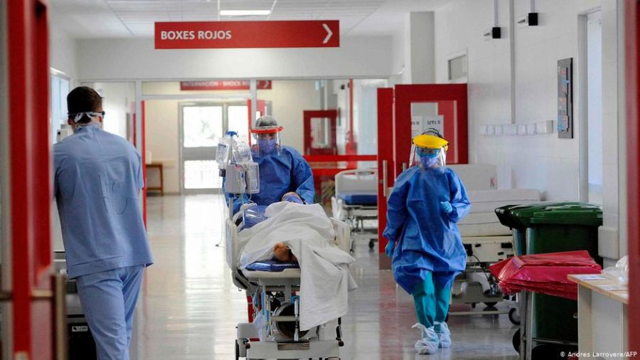 Un paciente es transportado hacia una UCI en el Hospital Central de Mendoza, Argentina.