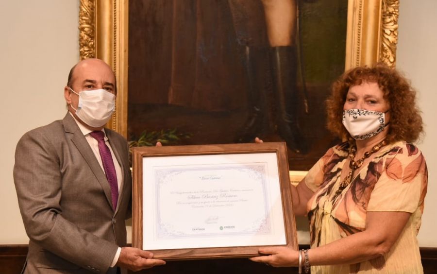 El vicegobernador, Gustavo Canteros hizo entrega del reconocimiento “Hacedores del Bien Común” a Thierry Calderón de la Barca y Silvia Beatriz Romero, autores de la marcha al General Manuel Belgrano