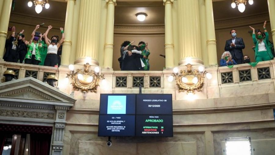 El "si" a la legalización del aborto (mediante el proyecto de Interrupción Voluntaria del Embarazo) hasta la semana 14 de gestación se impuso por 38 votos afirmativos y 29 negativos y una abstención, tras un acuerdo alcanzado con algunos senadores indefinidos para retoques en el texto al momento de la promulgación, en una sesión que comenzó el martes y se extendió durante 12 horas.