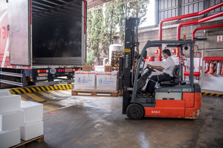 Las vacunas son despachadas en conservadoras desde Avellaneda, Provincia de Buenos Aires, embaladas con materiales que garantizan 60 horas de frío.