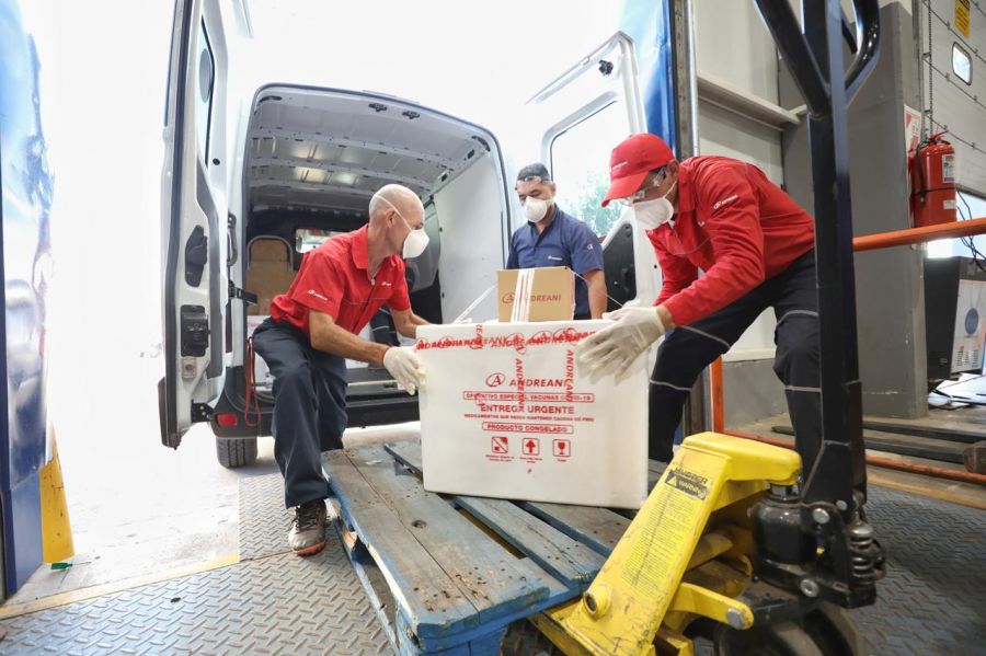 Las dosis fueron entregadas en Droguería del Sud -empresa responsable del almacenaje- y recibidas por la directora de Inmunización, Marina Cantero.