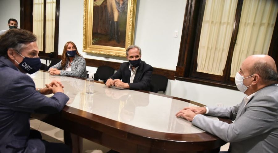 El vicegobernador Gustavo Canteros, y los ministros de Obras y Servicios Públicos, Claudio Polich, y de Seguridad, Juan José López Desimoni.se reunieron con el titular de la CNRT José Arteaga