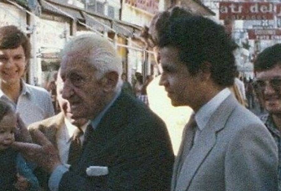 Foto del Dr. Illia y el autor de la nota haciendo proselitismo en.la peatonal de la Calle Junin.