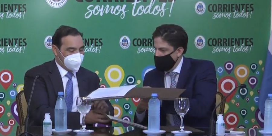 El gobernador de Corrientes, Gustavo Valdés, y el ministro de Educación de la Nación, Nicolás Trotta, firmaron hoy un convenio en Casa de Gobierno para la continuidad de las obras en la Escuela Técnica “Construcciones Portuarias y Vías Navegables”. En paralelo, el ministro de Educación invitó a la provincia de Corrientes a iniciar el ciclo lectivo 2021 el 1 de marzo.