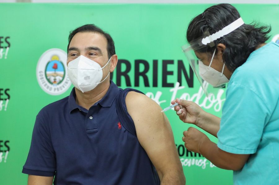 En la tarde de este jueves el gobernador, Gustavo Valdés se hizo presente en el Hospital de Campaña Hogar Escuela, para recibir la aplicación de la segunda dosis de la vacuna rusa Sputnik V contra el Coronavirus.