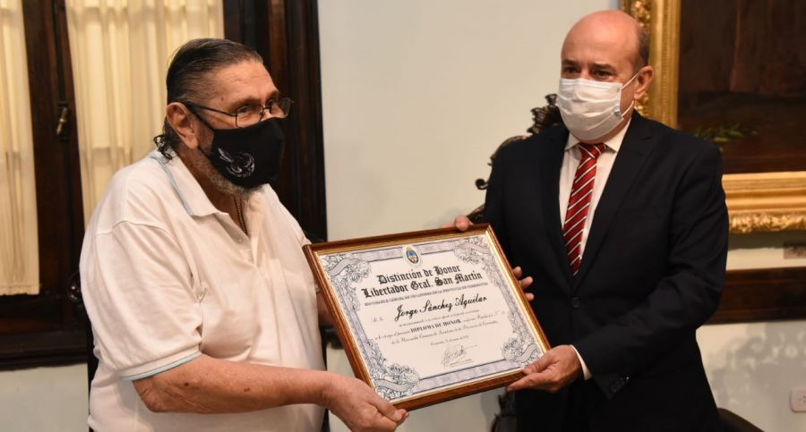 El vicegobernador, Gustavo Canteros, distinguió al poeta Jorge Sánchez Aguilar con el reconocimiento General San Martín, que se otorga a personalidades destacadas en distintas disciplinas, por su aporte a la poesía correntina.