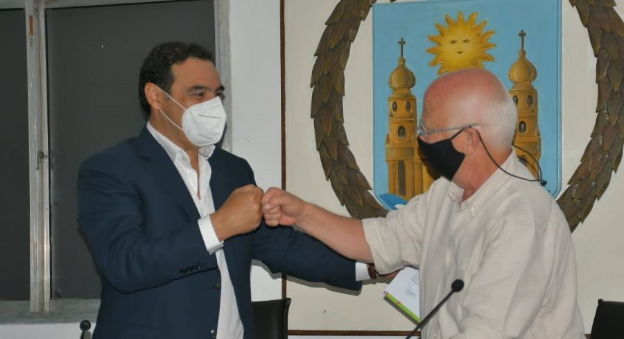 Antes de firmar los convenios en el Concejo Deliberante, Valdés recorrió con Osella las obras en el hospital Camilo Muniagurria.