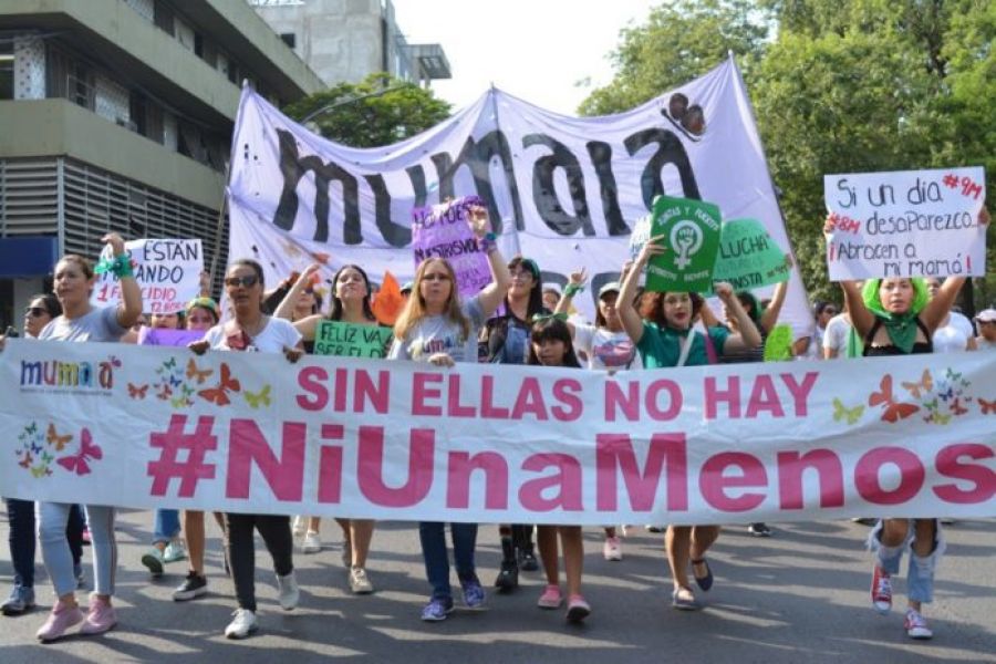 Las Mujeres de la Matria Latinoamericana -MuMaLa- partieron frente al Hospital Perrando a las 9 horas y culminan en la sede del juzgado civil y comercial ubicado en López y Planes 38