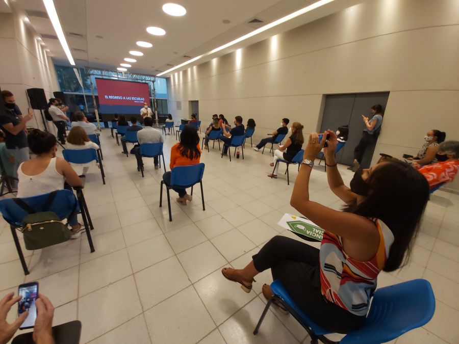 “Es una clase abierta para desmitificar que la escuela es un riesgo, la escolaridad presencial con mucho cuidado es una ecuación que tenemos que empezar a vivir desde ahora, tenemos que educar y cuidar”, sostuvo allí Serra.