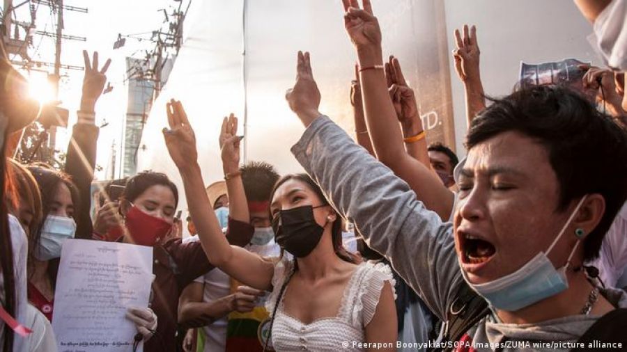 Decenas de miles de personas, según varias estimaciones, marcharon este miércoles (10.02.2021) por el centro de Rangún, la capital económica del país, pese al recrudecimiento de la represión el martes.