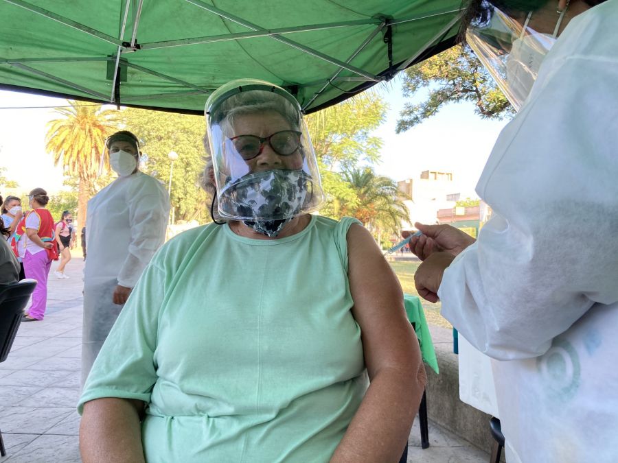 Alicia Morales, de 71 años, fue la primera voluntaria en recibir la vacuna contra el COVID-19 en la plaza Cabral de Capital, comunicó el gobierno de la provincia.
