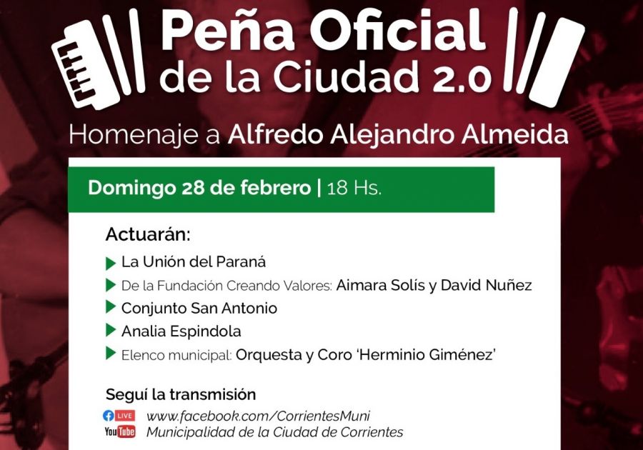 Los interesados en disfrutar de una velada puramente chamamecera podrán seguir la actuación de los diferentes artistas que pasarán por el escenario desde las 18 a través de la página de Facebook (https://www.facebook.com/corrientesmuni/) y el canal de YouTube de la Municipalidad (https://bit.ly/3a3w3bb).