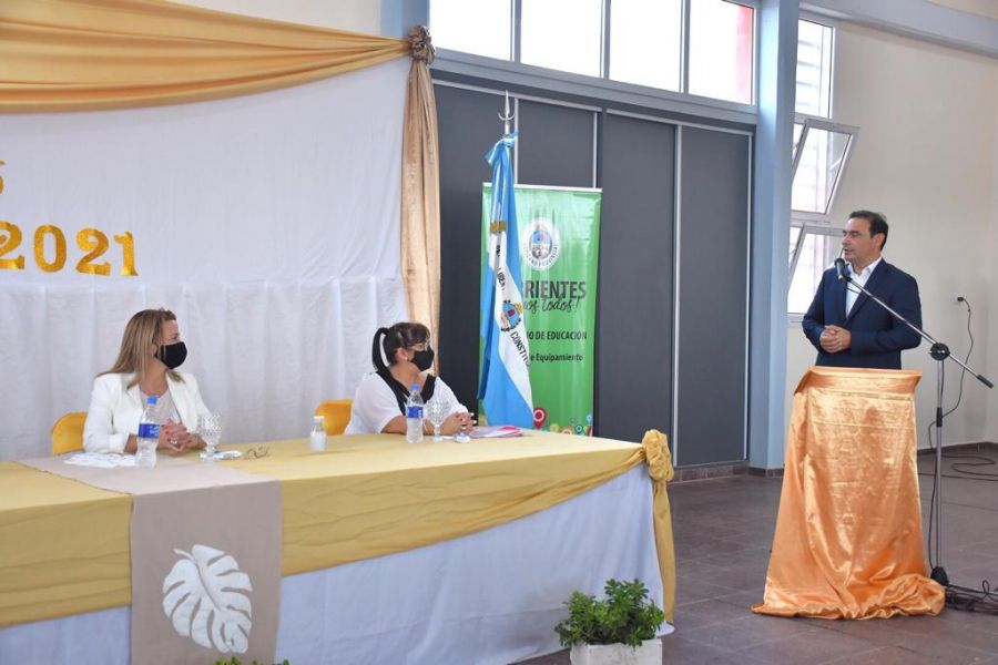 También se hicieron presentes en el acto -desarrollado bajo estricto protocolo sanitario-, ministros del ejecutivo provincial, el subsecretario de Infraestructura Escolar, Emilio Breard, directivos del establecimiento educativo, autoridades comunales y vecinos.