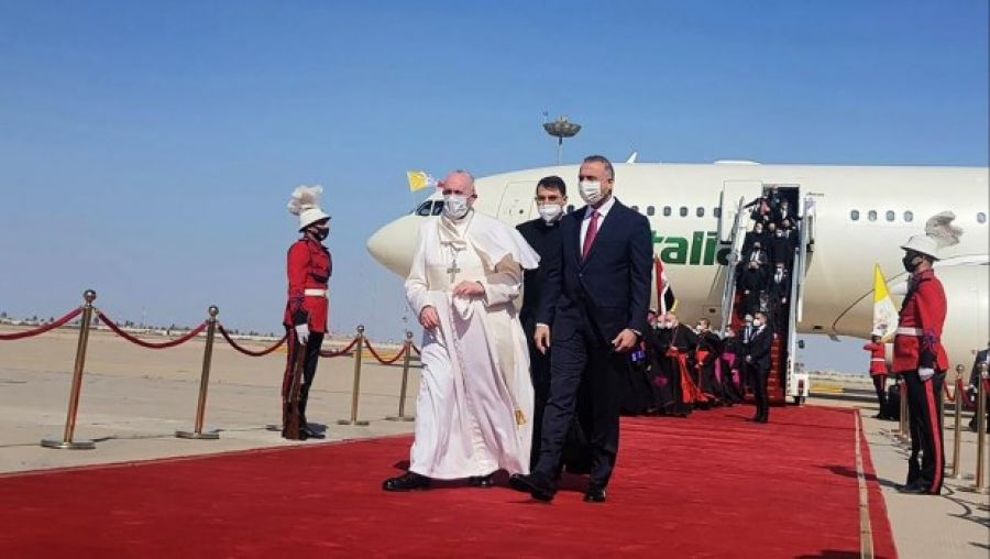 Francisco aterrizó en Bagdad, punto de partida de su visita a Irak, la primera de un Papa al país del suroeste asiático, y primer desplazamiento del Pontífice al extranjero desde el inicio de la pandemia de coronavirus.