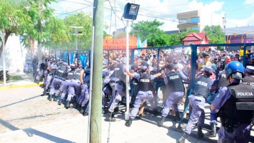 Si bien las protestas comenzaron ayer por la noche en la puerta de la gobernación, este mediodía la situación se puso más tensa con la aparición de los efectivos de seguridad, que intentaron que los manifestantes depusieran su actitud con palazos, balas de goma y gases lacrimógenos. Hubo más de 90 detenidos y decenas de heridos.