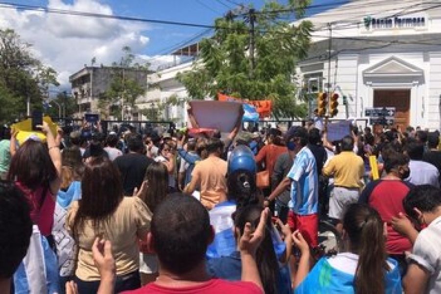 En las marchas se rechazó el regreso a la fase 1 de la capital provincial, decidido por Insfrán ante un brote de casos. Uno de los cánticos de los manifestantes en la protesta de ayer era: “Se va a acabar, se va a acabar, la dictadura de Gildo Insfrán”. También se escuchó: “Gildo, basura, vos sos la dictadura”.