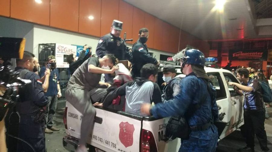 Tras la quema de una parte de la sede de la ANR, la turba de manifestantes se movilizó hacia el centro, causando destrozos a su paso. Los vándalos fueron seguidos por la Policía y en un punto dado fueron detenidos, pese a que muchos de ellos pedían que sean liberados.
