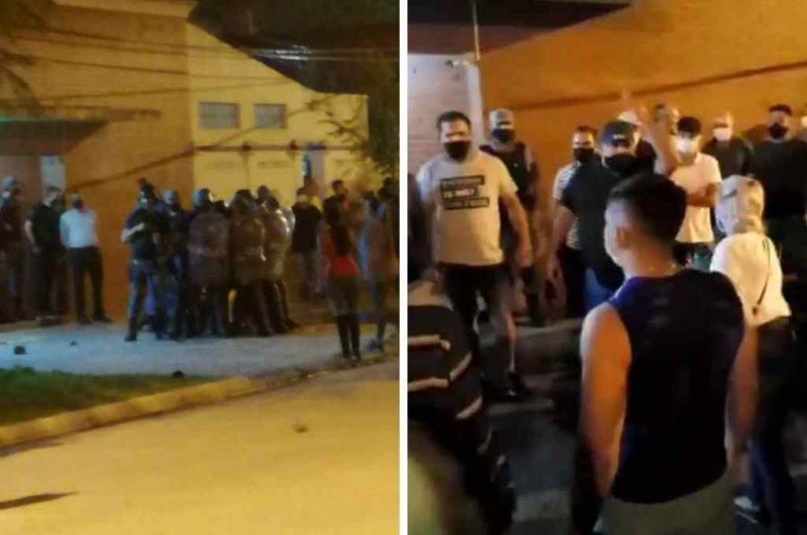 En las imágenes, filmadas por los propios vecinos, se escuchan gritos, corridas y se ven enfrentamientos con policías y civiles apostados en la entrada del domicilio del Intendente.