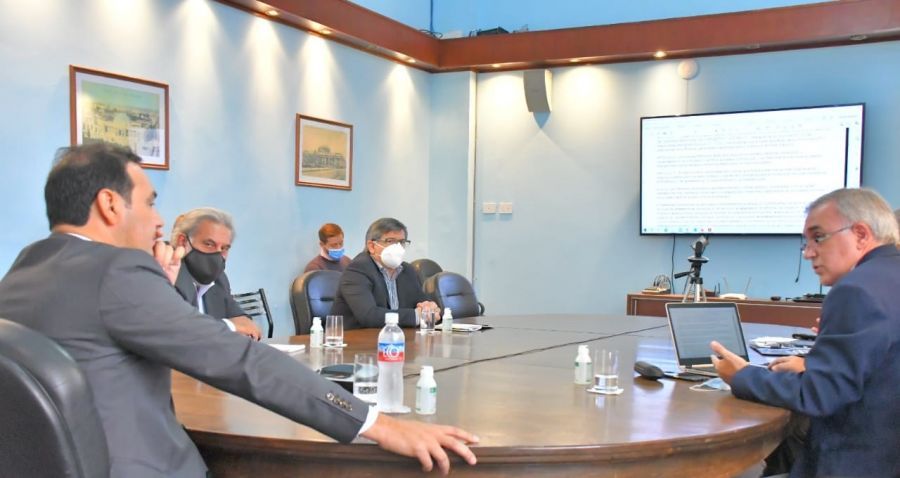 El mandatario provincial encabezó este lunes al mediodía una reunión de trabajo en el Salón Azul de Casa de Gobierno junto a los ministros de Producción, Claudio Anselmo; de Ciencia y Tecnología, Orlando Macció; de Coordinación y Planificación, Horacio Ortega; y el subsecretario de Salud, Luis Pérez. Allí los funcionarios le presentaron al Gobernador los avances en el marco de la ley provincial N °6.551 sancionada el 28 de diciembre pasado.