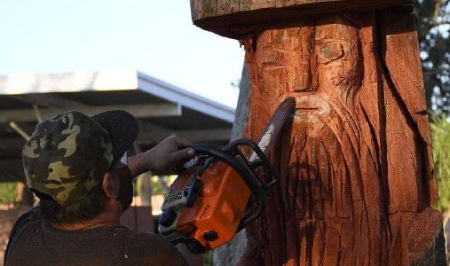 Intervienen escultores de diferentes puntos del país con temáticas referidas a mitos y leyendas de Corrientes.. Durante el encuentro estudiantes de las escuelas de la zona plantaron ejemplares de eucaliptos donados por el INTA.