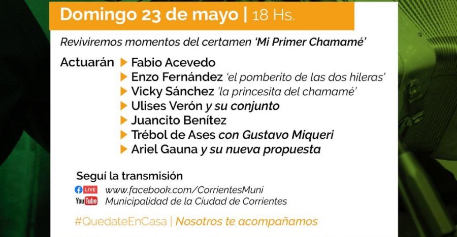 Este domingo desde las 18, la Municipalidad de Corrientes ofrecerá a los vecinos y amantes de la música chamamecera una nueva edición de la Peña Oficial de la Ciudad 2.0. Con un homenaje a Juancito Montiel, el público podrá disfrutar desde la comodidad de sus hogares las actuaciones de destacados artistas del género.