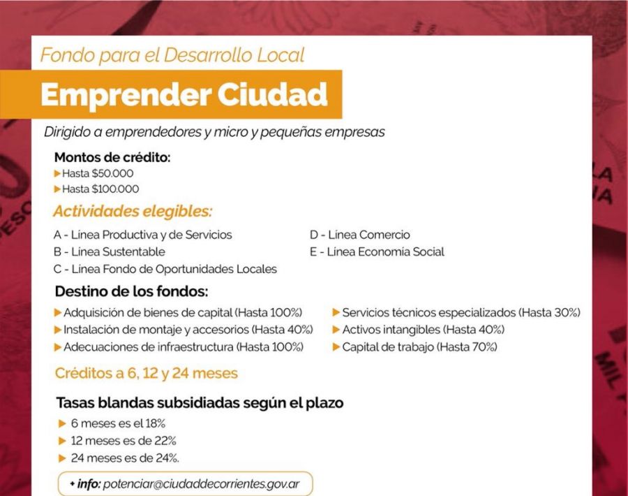 Se trata del programa Emprender Ciudad, que es llevado adelante por la Secretaría de Desarrollo Económico, que permite a los emprendedores acceder a créditos con tasas blandas y cuotas de 6, 12 y 18 cuotas.