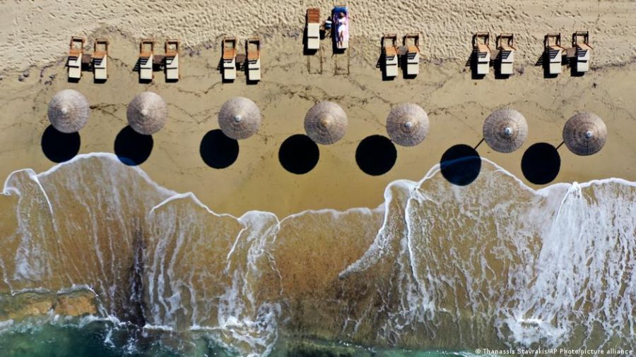 Foto: Playa de la isla griega de Naxos, en el Mar Egeo, con una única bañista en una imagen del mes pasado.
