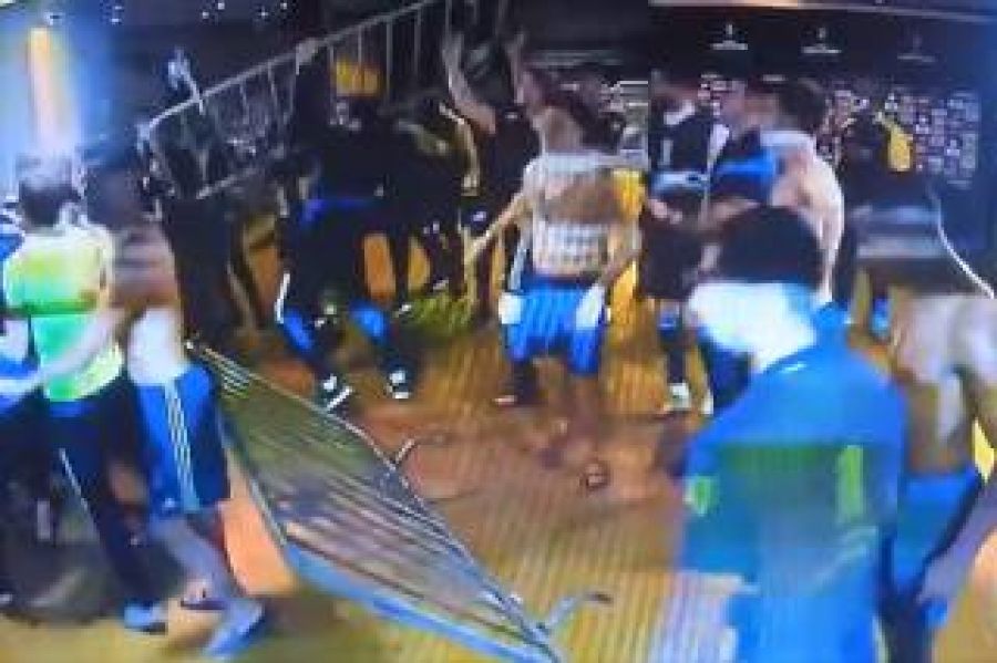 En el video se puede ver cómo en un pasillo los jugadores de Boca van acercándose de a poco a los guardias de seguridad y se escuchan gritos. No pasó mucho tiempo hasta que empezaron a volar objetos y se propinaron los golpes.