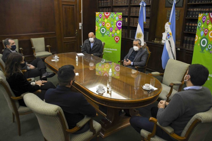 El encuentro se realizó en el Salón de Acuerdos del Ministerio de Hacienda y Finanzas de Corrientes; el ministro Rivas Piasentini estuvo acompañado del secretario asesor de la cartera económica Héctor Grachot, y el subdirector impositivo y de fiscalización de la Dirección General de Rentas Alejandro Crivelli.