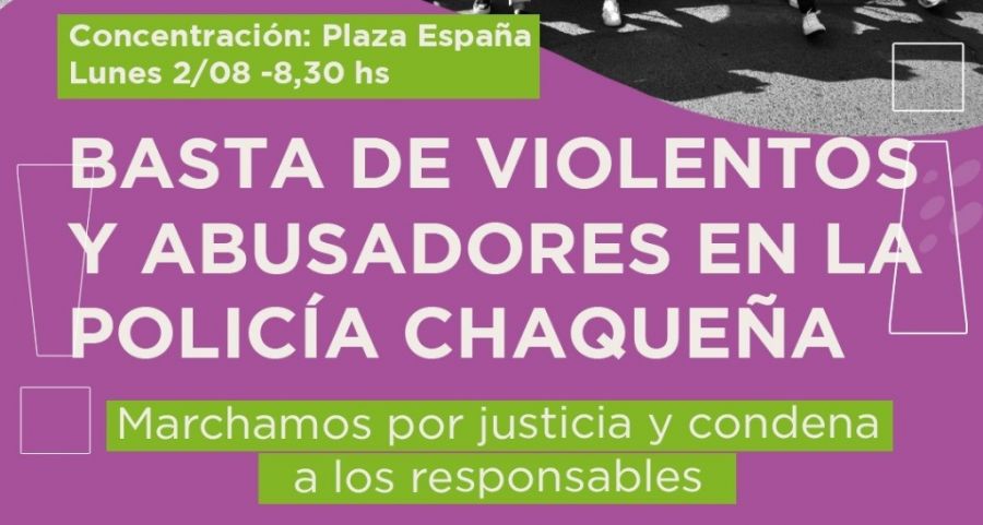 La marcha será este lunes 2 de agosto en Resistencia-Chaco- para denunciar el abuso policial cometido en General San Martín contra una menor de 16 años.