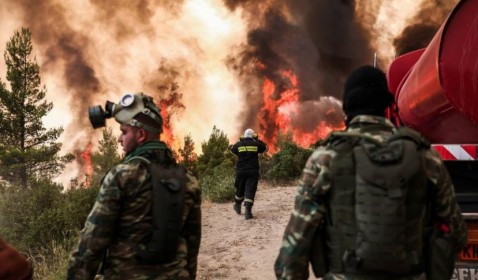 Un despliegue similar se llevó a cabo en la inmensa isla de Eubea, a unos 200 km al este de Atenas, para intentar controlar un violento incendio que se declaró el martes en un terreno montañoso y arbolado. Las elevadas temperaturas de estos últimos días agravan la situación.