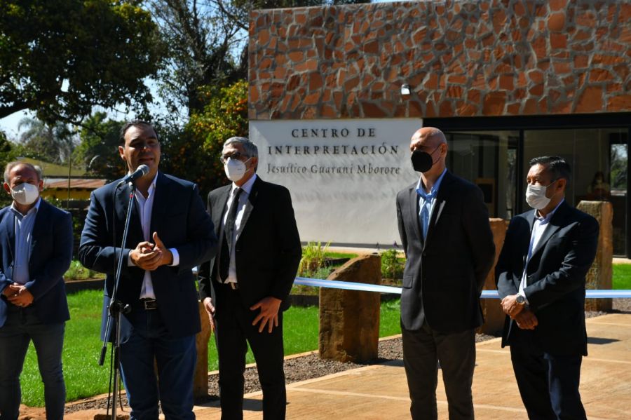 Luego continuaron hasta la esquina de las calles Belgrano y Zelmira de Luca de Soto, donde se ubica el Centro de Interpretación Jesuítico Guaraní Mbororé. En el frente de este flamante edificio realizaron el corte de cinta respectivo y las autoridades expresaron los discursos de la ocasión. Asimismo, tuvo lugar la bendición religiosa y bendición de obras, a cargo del padre Jorge Gómez.