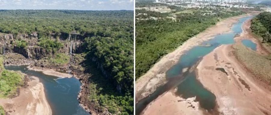 En su curso dentro del territorio brasilero se construyeron seis represas hidroeléctricas, Foz de Areia, Salto Segredo, Salto Santiago, Salto Osorio, Salto Caxias y Baixo Iguaçu, que cuando falta la lluvia cierran las compuertas para retenerla provocando diversos problemas en Argentina como: se “secaron” las cataratas del Iguazú; dos ciudades de Misiones se quedaron sin agua potable; los ríos Iguazú, Paraná y Uruguay llegaron a sus niveles más bajos de los últimos 90 años, provocando la mortandad de miles de peces y otras especies.