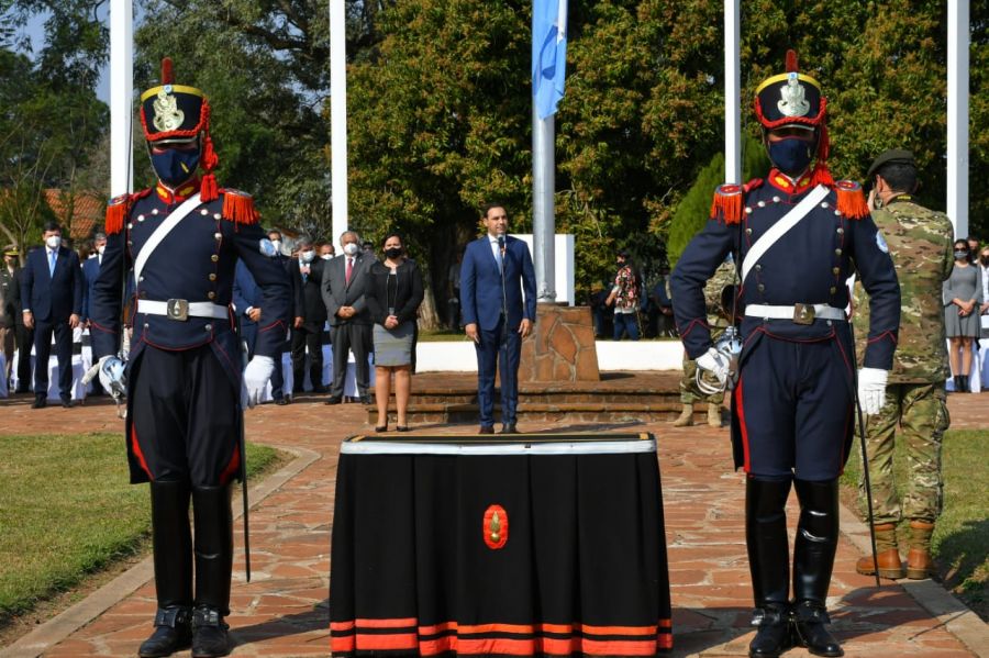 En primer término, para dar inicio al acto del 171° aniversario del Paso a la Inmortalidad del General San Martín en Yapeyú, el jefe de la Agrupación Libertador Teniente Coronel Rodolfo Alejandro de la Torre, presentó a los efectivos formados al gobernador de la provincia Gustavo Valdés, quien pasó revista y saludó a la formación acompañado por el Comandante de la Primera División de Ejército General de Brigada Diego Martín López Blanco y la intendenta de localidad de Yapeyú, Marisol Fagúndez. Posteriormente, hizo ingreso el sable del Libertador General San Martín en manos de los granaderos dependientes del Destacamento Yapeyú del Regimiento de Granaderos a caballo.