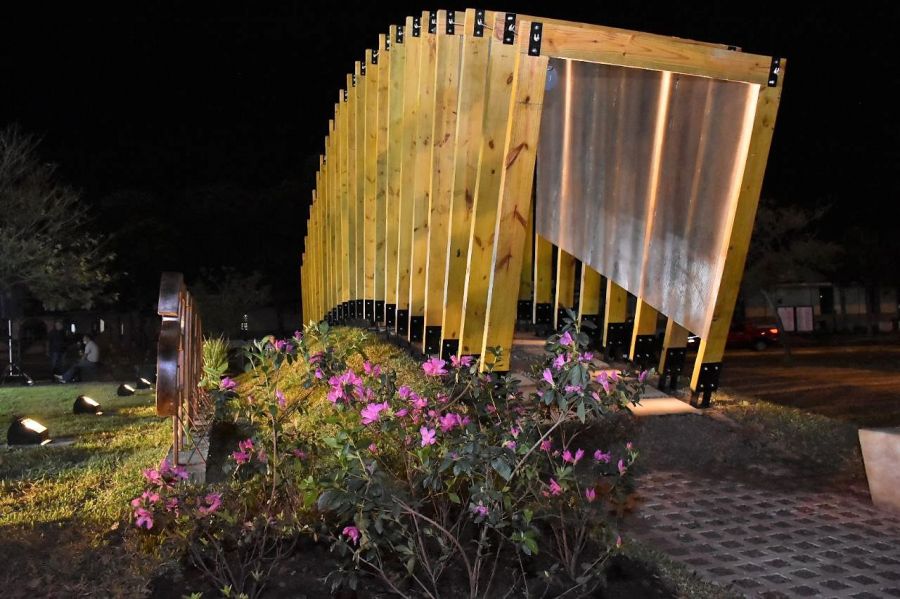 El intendente Eduardo Tassano inauguró en el paseo Arazaty el emplazamiento de la obra “Raíz en Despliegue” junto a su autora, la joven arquitecta virasoreña Julieta Acuña, ganadora del concurso Bienvenidos a Corrientes.